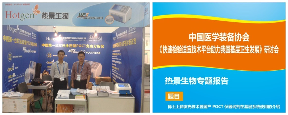 同期,熱景公司參加了中國醫(yī)學(xué)裝備協(xié)會—《快速檢驗適宜技術(shù)平臺助力我國基層衛(wèi)生發(fā)展》研討會,總經(jīng)理林長青做了主題為:稀土上轉(zhuǎn)發(fā)光技術(shù)暨國產(chǎn)POCT儀器試劑在基層系統(tǒng)使用的介紹。上轉(zhuǎn)發(fā)光技術(shù)的優(yōu)勢引起業(yè)內(nèi)專家人士的高度認(rèn)同。
