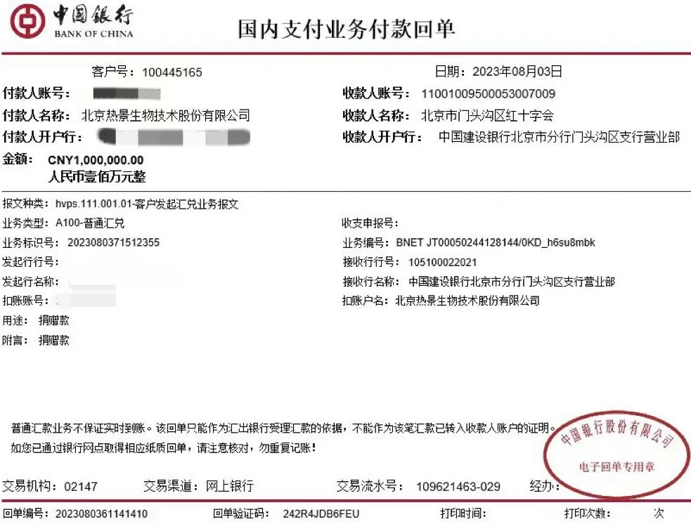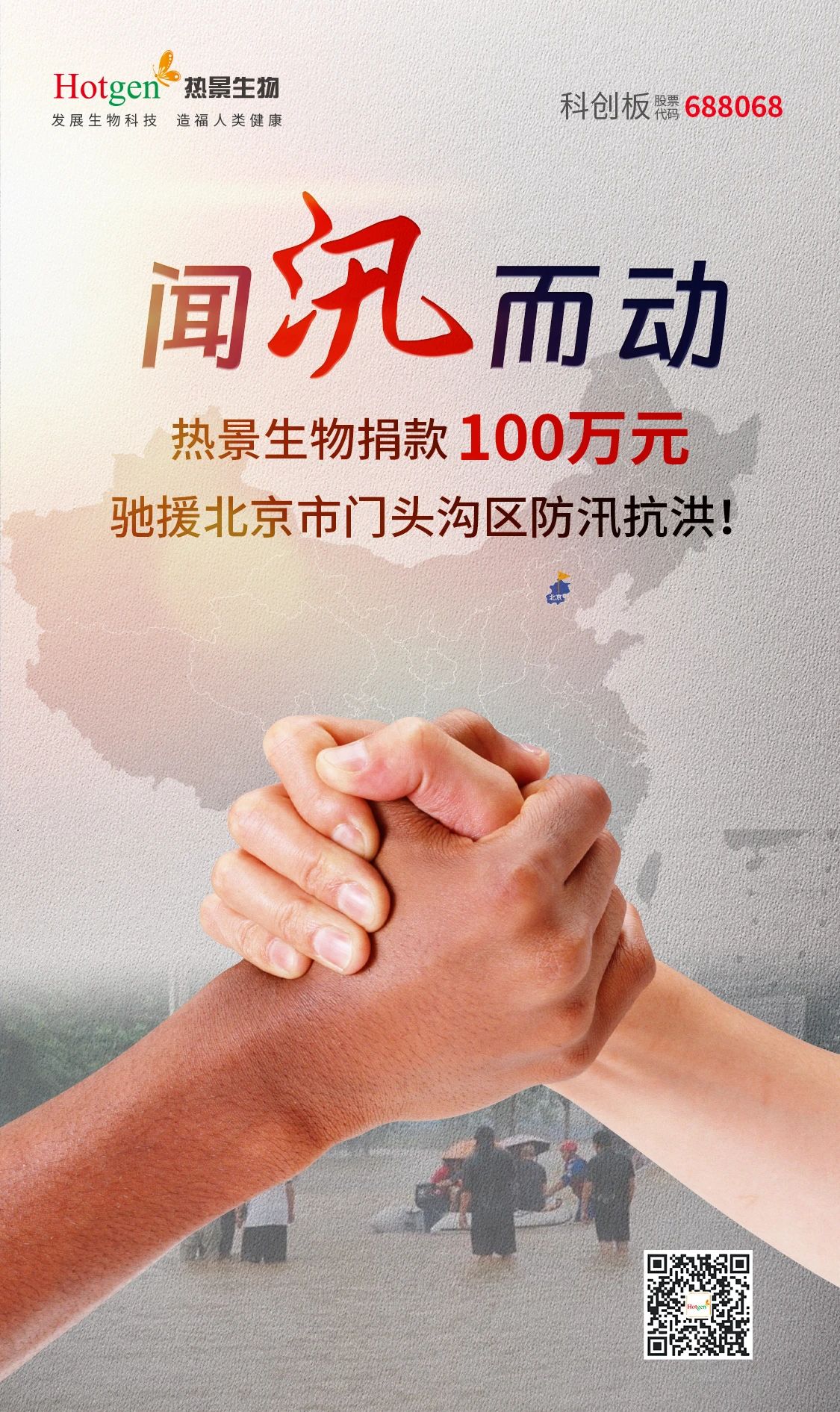 熱景生物一直密切關(guān)注著汛情救援進(jìn)展,主動(dòng)聯(lián)系相關(guān)部門提供支援幫助,并向北京市門頭溝區(qū)紅十字會(huì)捐贈(zèng)100萬元防汛抗洪資金,助力當(dāng)?shù)卣蜕鐣?huì)力量抗擊災(zāi)情。