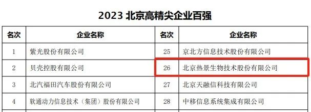 近日,北京企業(yè)聯(lián)合會、北京市企業(yè)家協(xié)會公布了2023北京企業(yè)百強名單,熱景生物榮登熱景生物榮登2023北京高精尖企業(yè)百強、2023北京制造業(yè)企業(yè)百強、2023北京服務(wù)業(yè)企業(yè)百強三大榜單!三大榜單!
