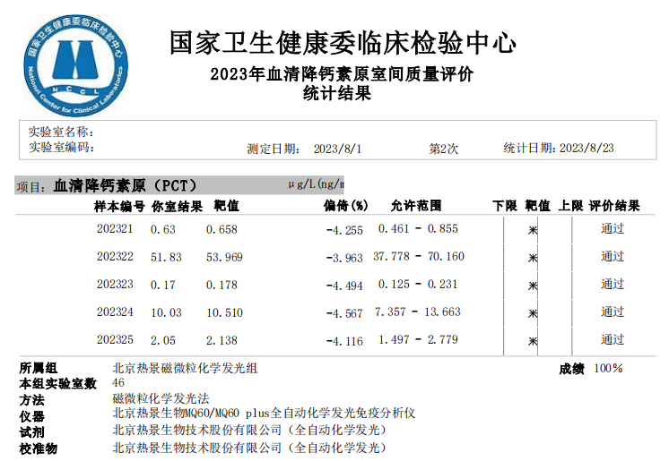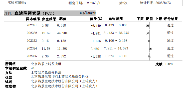 血清降鈣素原(PCT)室間質(zhì)評成績單(UPT、CLIA平臺)