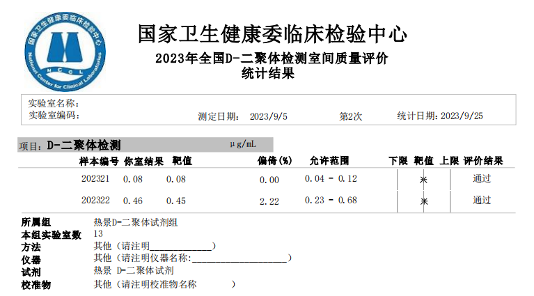 D-二聚體室間質(zhì)評成績單