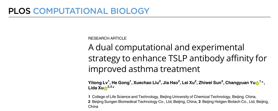 近日,熱景生物“X-Gen AI新藥發(fā)現(xiàn)與設(shè)計研究中心”在生物信息學(xué)與計算生物學(xué)領(lǐng)域高影響力經(jīng)典期刊PLOS Computational Biology上發(fā)表了題為“A Dual Computational and Experimental Strategy to Enhance TSLP Antibody Affinity for Improved Asthma Treatment” 的論文(doi: 10.1371/journal.pcbi.1011984)。“X-Gen AI新藥發(fā)現(xiàn)與設(shè)計研究中心”聯(lián)合培養(yǎng)博士生呂祎彤為論文第一作者,許立達研究員為論文主要通訊作者,北京化工大學(xué)喻長遠教授為共同通訊作者,舜景生物孫志偉總經(jīng)理為該套流程的搭建提供了極其重要的指導(dǎo)。