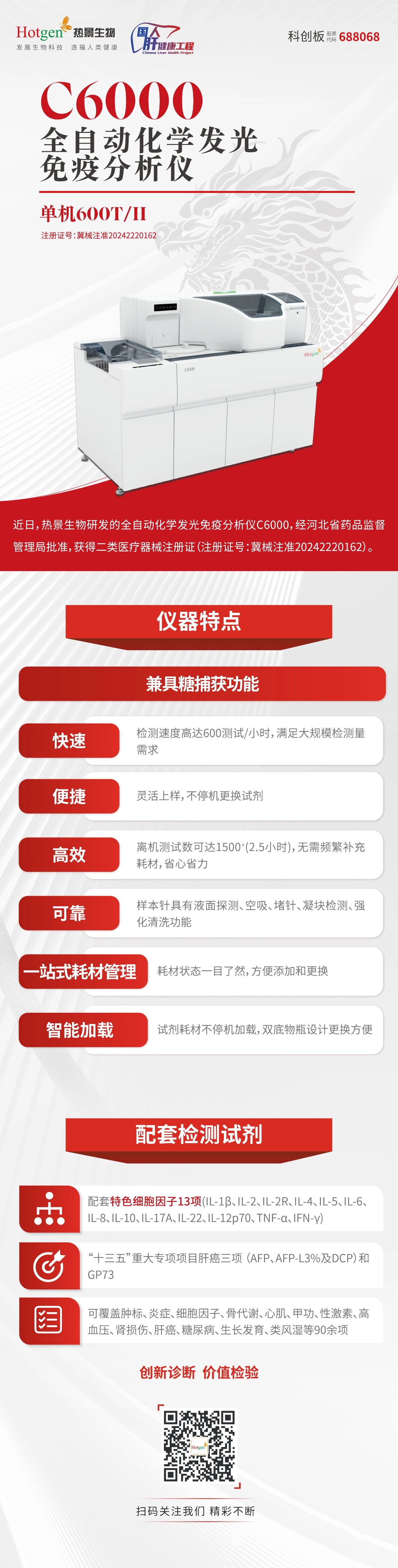 600T/H!熱景生物超高速全自動化學(xué)發(fā)光免疫分析儀C6000獲批上市