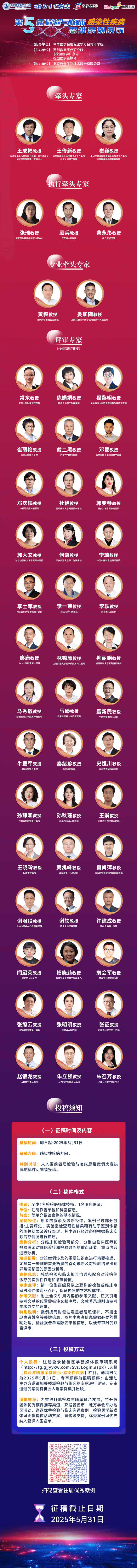 更多活動(dòng)流程及投稿信息見官方通知:火熱征稿中 | 第5屆檢驗(yàn)與臨床(感染性疾?。┧季S案例展示專家評(píng)審團(tuán)公布