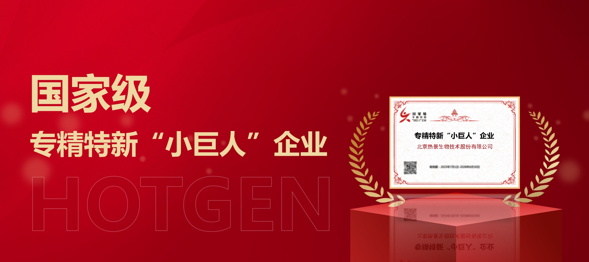 近日,工業(yè)和信息化部公布?第七批國(guó)家級(jí)專精特新 “小巨人” 企業(yè)名單,北京熱景生物技術(shù)股份有限公司(股票代碼:688068.SH)憑借在生物醫(yī)藥領(lǐng)域的核心技術(shù)優(yōu)勢(shì)、持續(xù)創(chuàng)新能力及細(xì)分市場(chǎng)領(lǐng)先地位,成功獲此殊榮,標(biāo)志著公司在 “專業(yè)化、精細(xì)化、特色化、創(chuàng)新型” 發(fā)展道路上邁上新臺(tái)階。