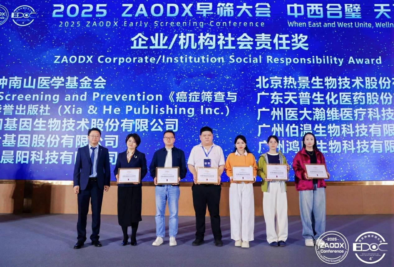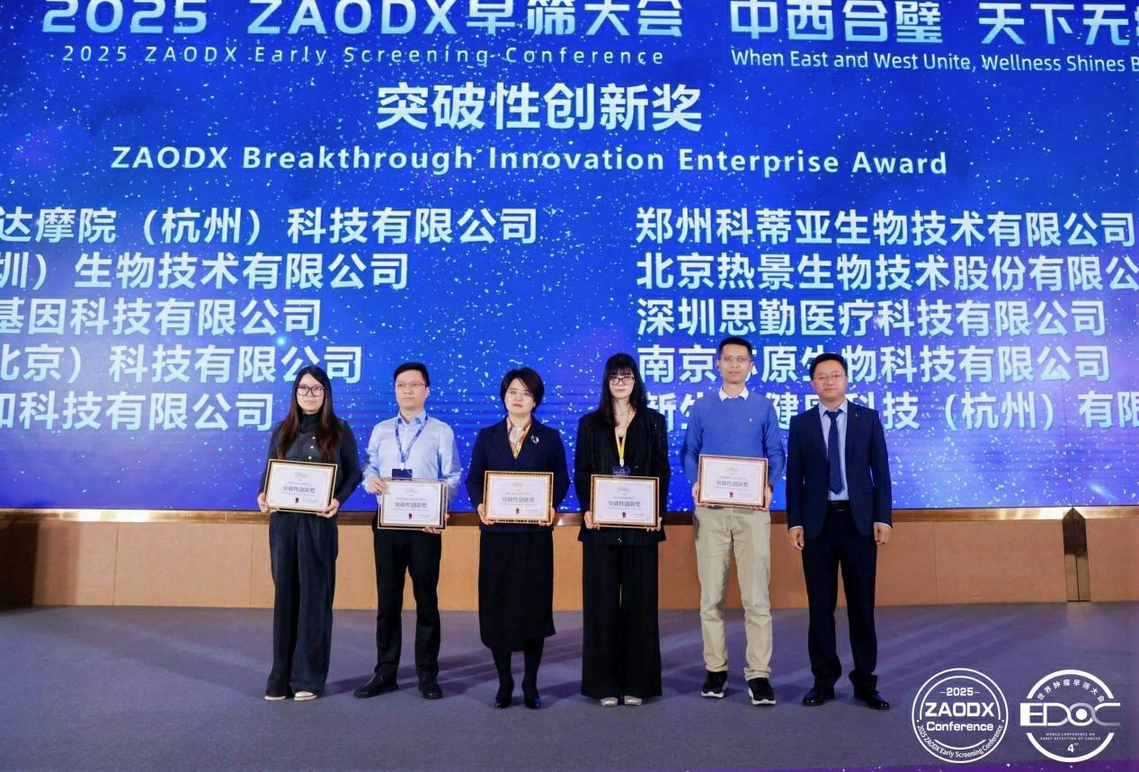 12月20日-21日,以“中西合璧,天下無疾”為主題的“2025 ZAODX早篩大會”在廣州舉辦。會議期間,主辦方公布了第四屆“金篩獎”榜單,并舉行線下頒獎儀式。熱景生物憑借“C-GALAD肝癌風(fēng)險預(yù)警模型”的創(chuàng)新性以及“肝癌早篩健康中國行”公益項目的巨大社會和經(jīng)濟(jì)價值分別榮獲“突破性創(chuàng)新獎”與“企業(yè)/機(jī)構(gòu)社會責(zé)任獎”。一次斬獲兩項行業(yè)榮譽,體現(xiàn)了業(yè)界對公司在肝癌早篩領(lǐng)域技術(shù)創(chuàng)新與社會貢獻(xiàn)的充分肯定。