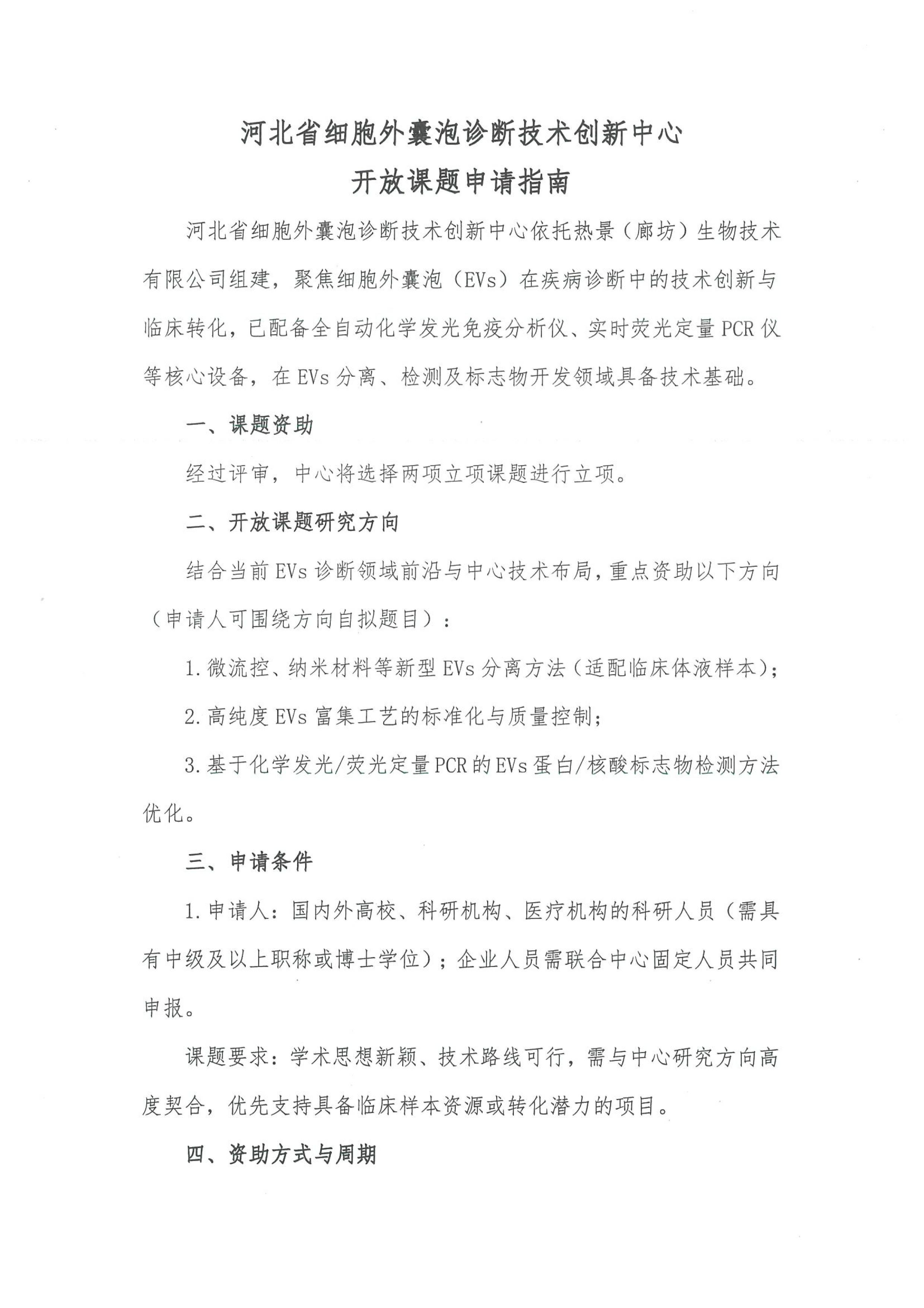 河北省細(xì)胞外囊泡診斷技術(shù)創(chuàng)新中心開放課題申請(qǐng)指南